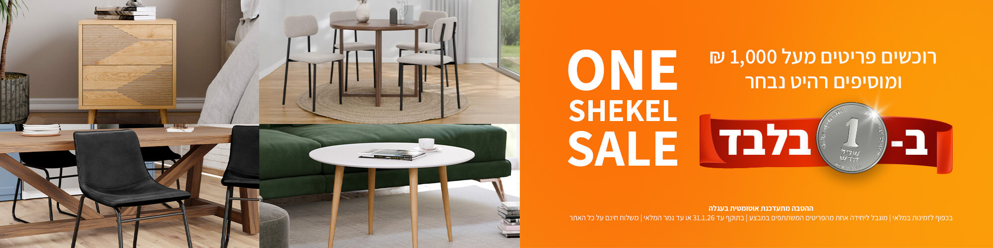 הודות למלאי הרחב שיש אצלנו זמני האספקה והשילוח עד לבית הלקוח מהירים. אנו דואגים להוביל את הריהוט עד לבית הלקוח תוך 10 ימי עסקים בלבד (מלבד מוצרים יוצאי דופן). כמו כן מעת לעת אנו עושים מבצעים על פריטים עם משלוח חינם – אז כדאי לכם להתעדכן ואף להירשם לניוזלטר שלנו ובכך לדעת ראשונים על כל המבצעים וההטבות שיש באתר.