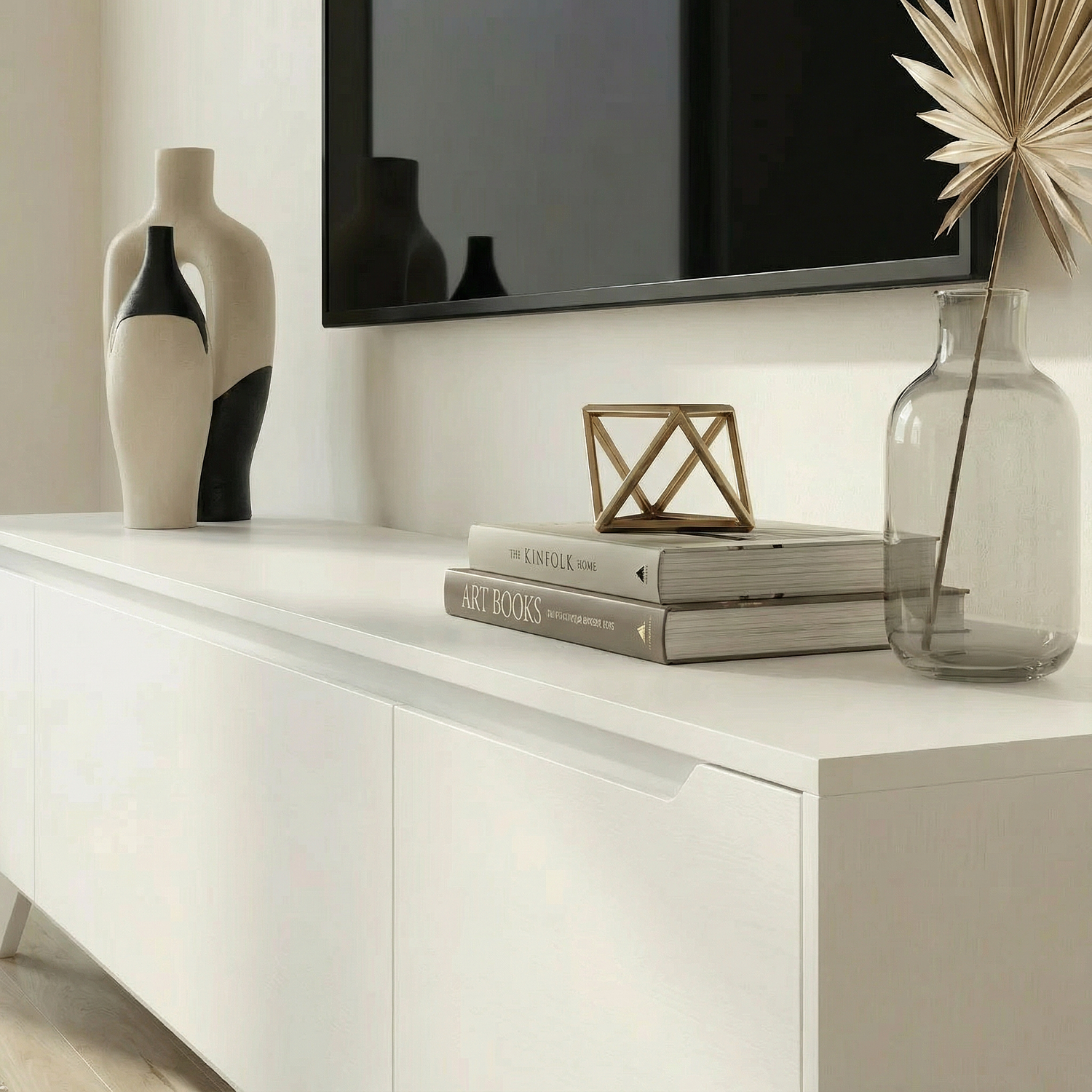 מזנון טלוויזיה בעיצוב נקי ומוקפד המשלב מגוון גוונים בגימור מודרני ואלגנטי