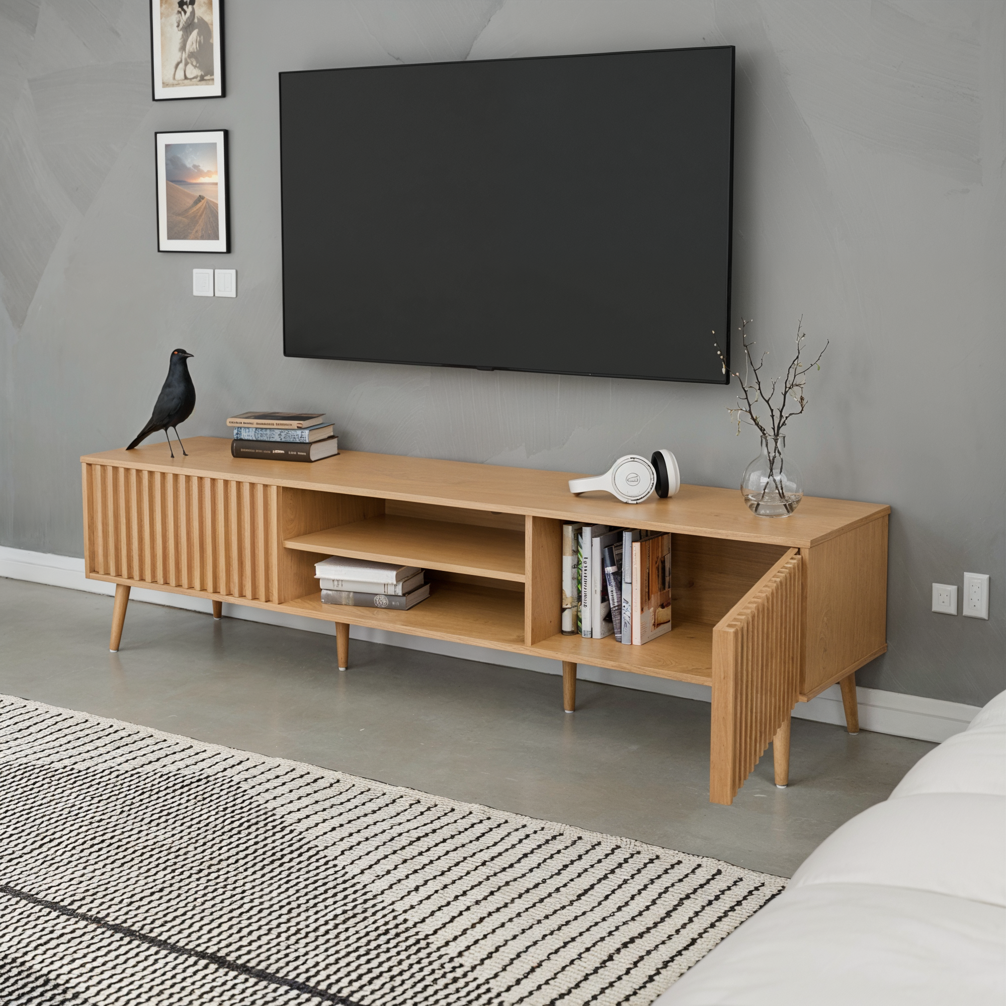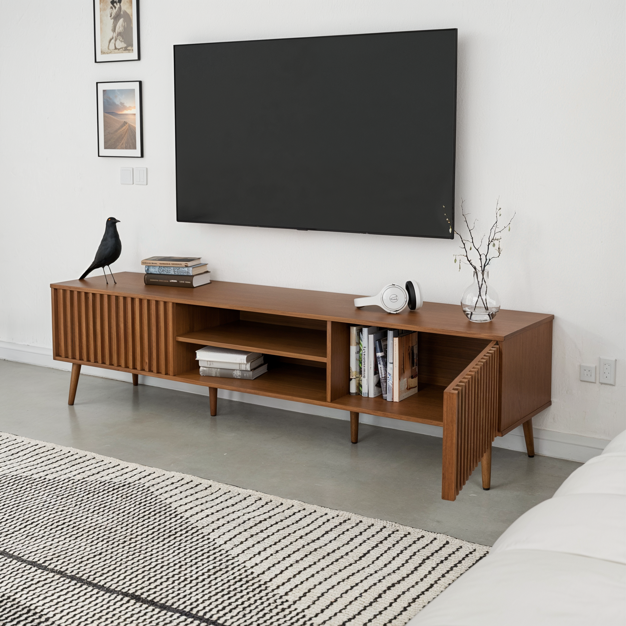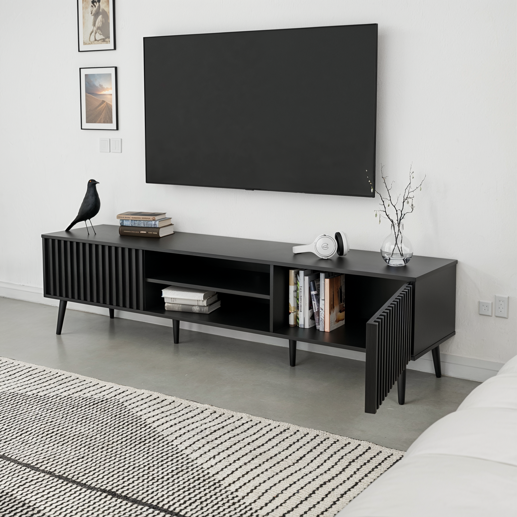 הכירו את המזנון שיגנוב את ההצגה – עיצוב אלגנטי ויוקרתי שמשלב פונקציונלית עם עיצוב עכשווי בגימור מושלם, רגליים אלכסוניות עדינות ושטח אחסון מרווח מזנון מושלם מתחת לטלוויזיה ולנוי.