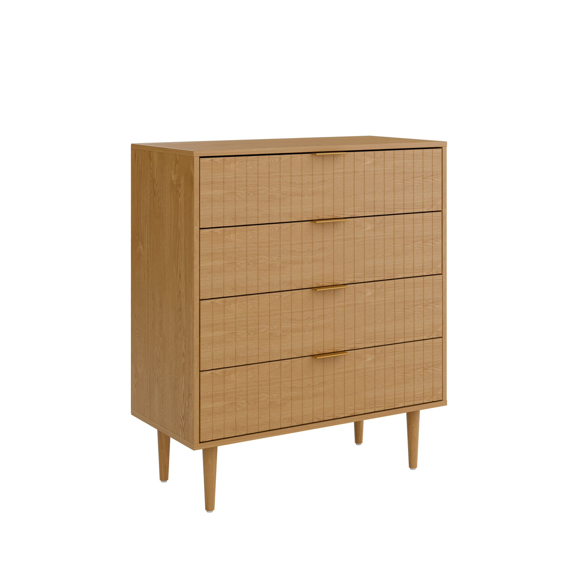 הקומודה מכילה ארבע מגירות מרווחות עם ידיות אלגנטיות ומסילות נוחות לפתיחה חלקה
