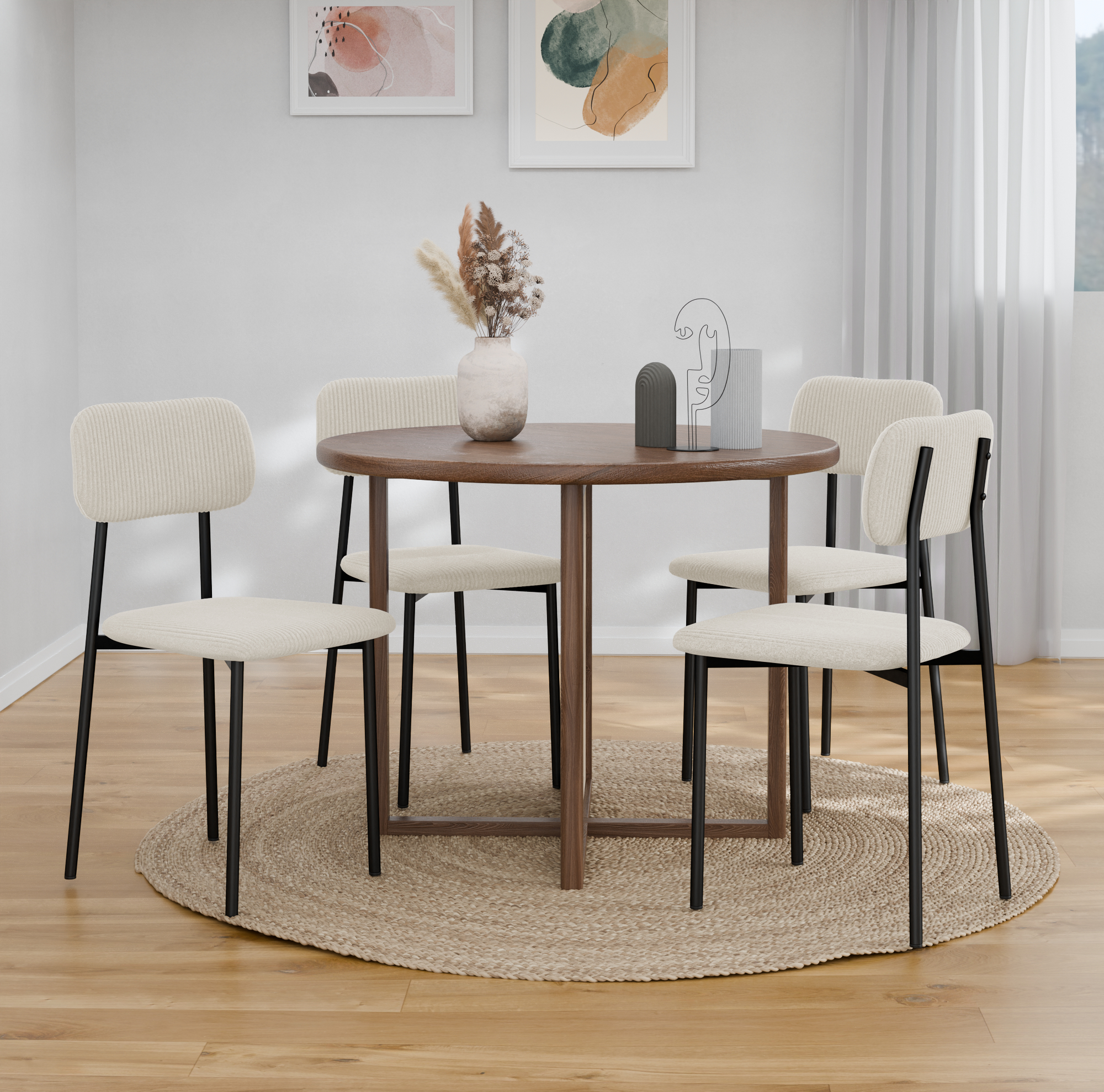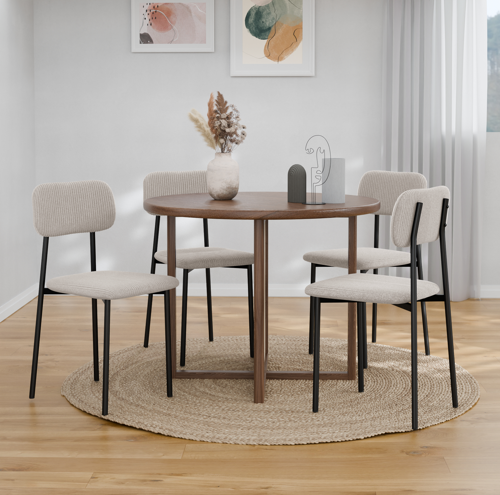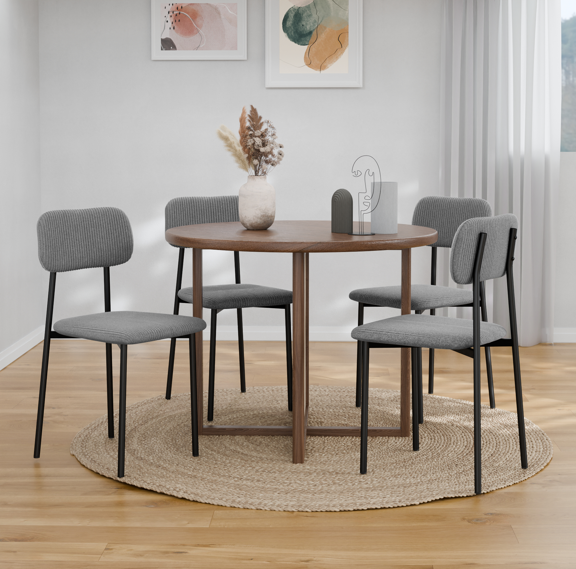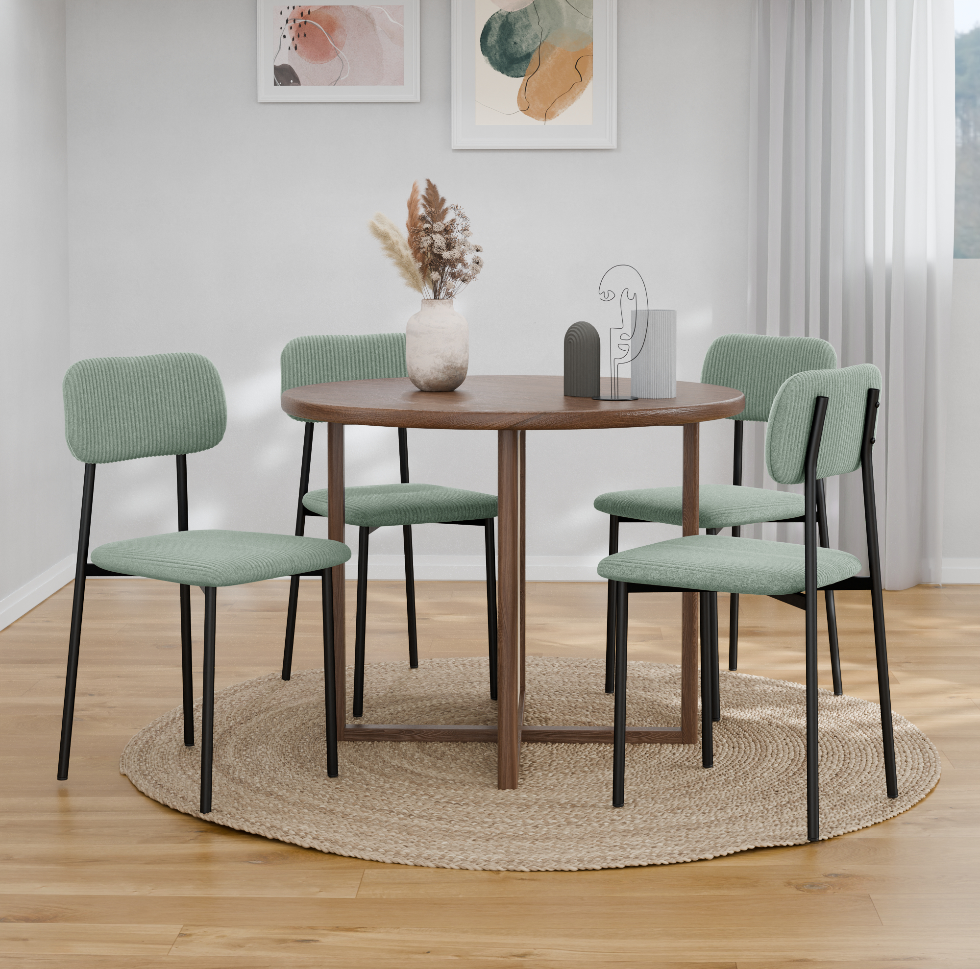 כיסאות בעל ריפוד קורדרוי רך ומפנק ורגלי מתכת חזקות ליציבות מירבית וישיבה נוחה