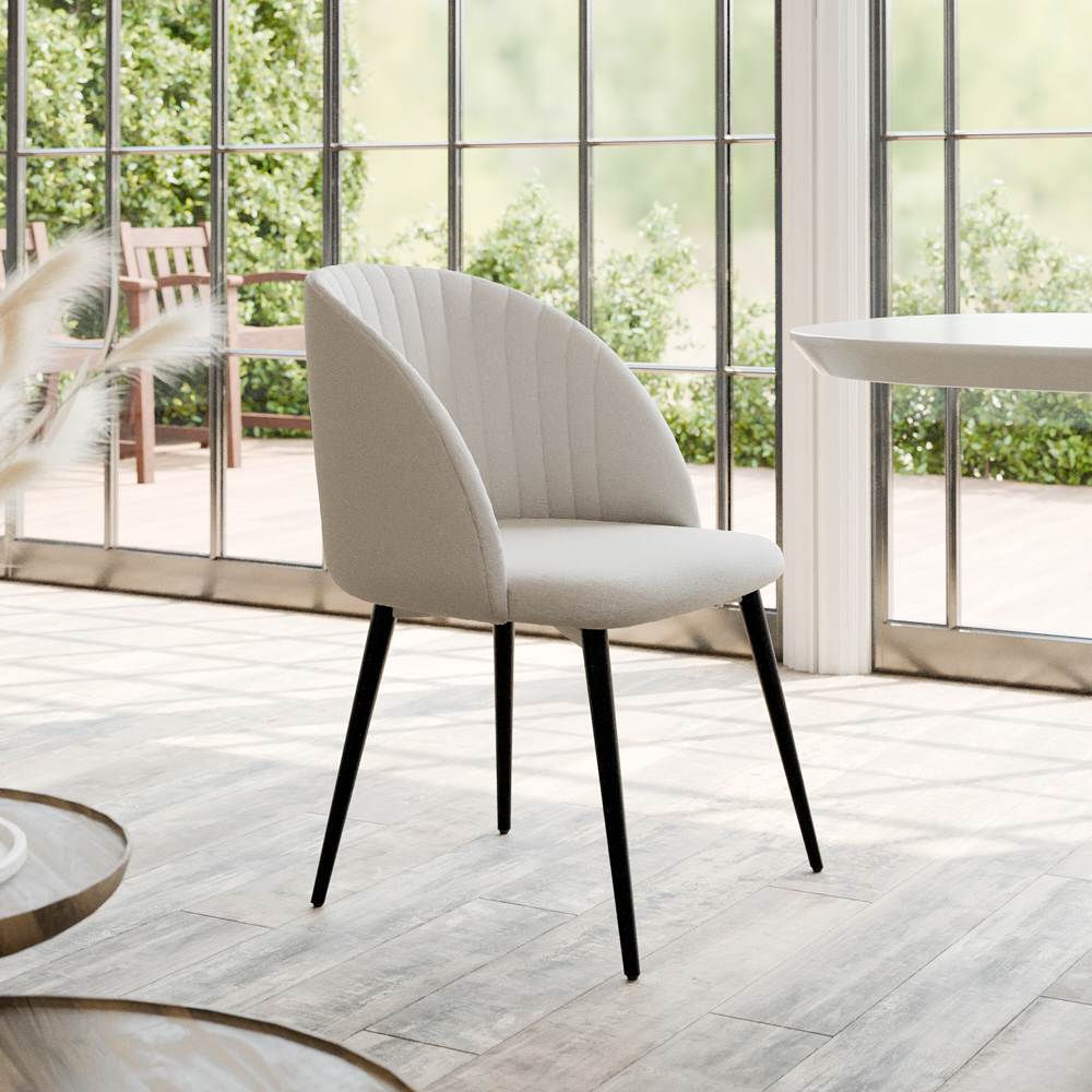 הכירו את כיסאות פינת האוכל שישדרגו לכם את חוויית הארוחות : שילוב מושלם של נוחות עיצוב מודרני בבד בוקלה יוקרתי בקווים נקיים ואלגנטיים בסגנון מודרני ויוקרתי