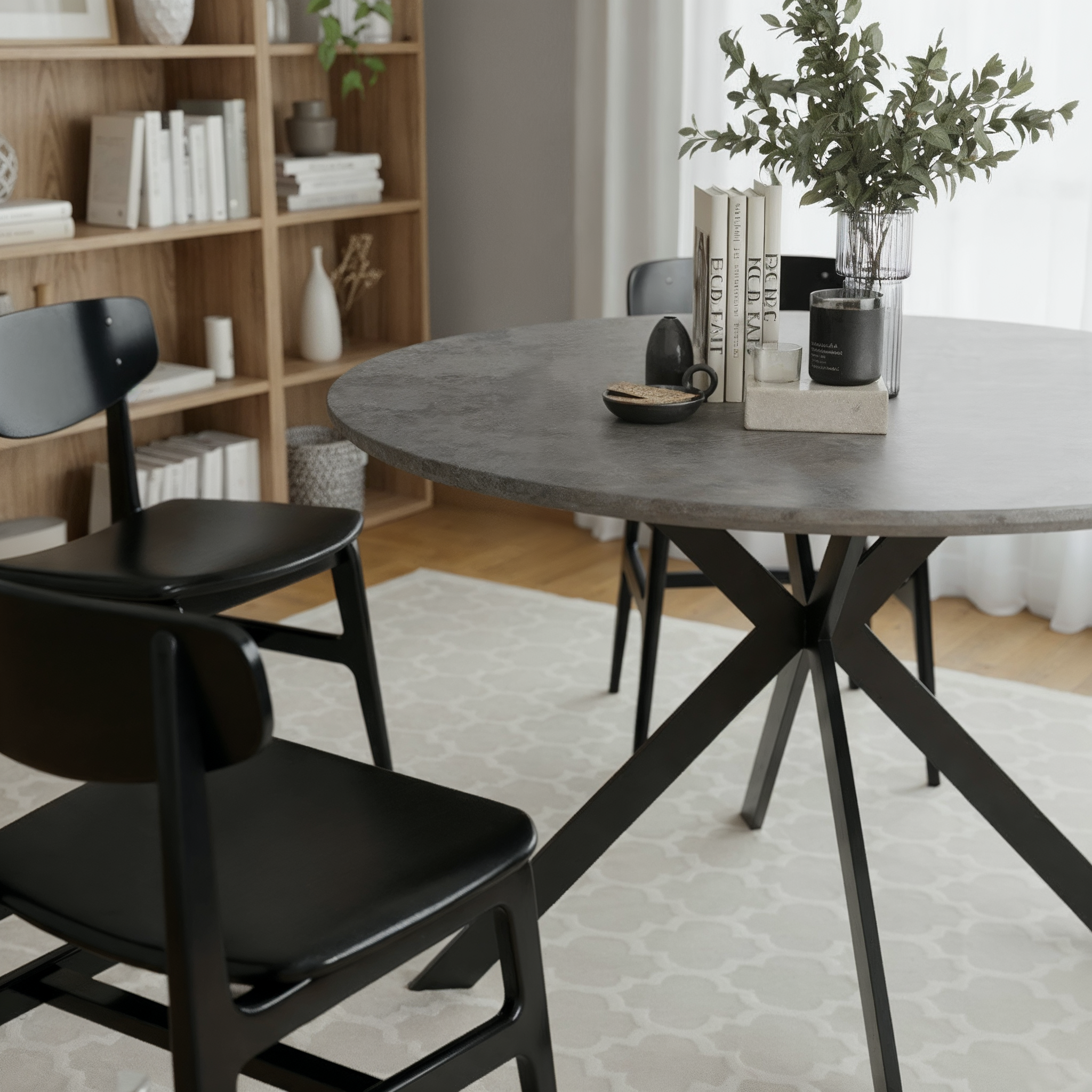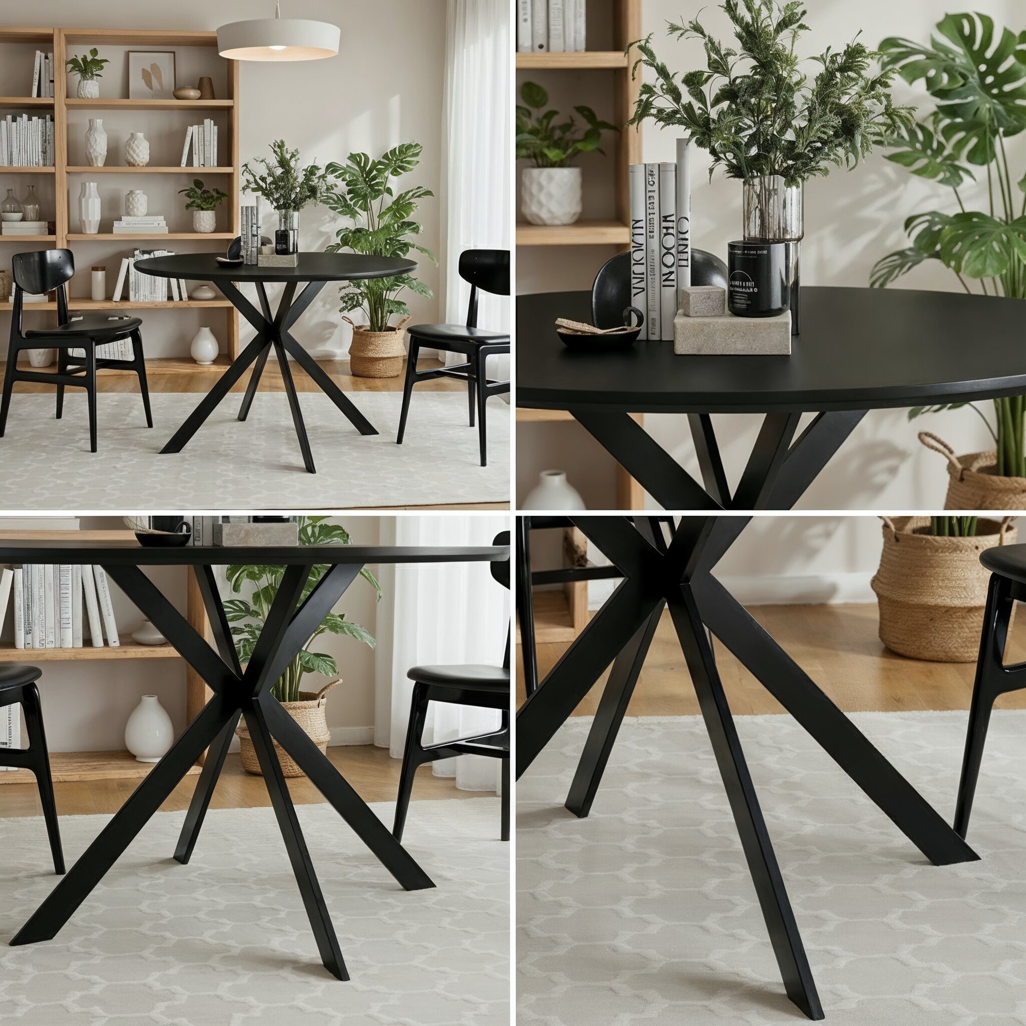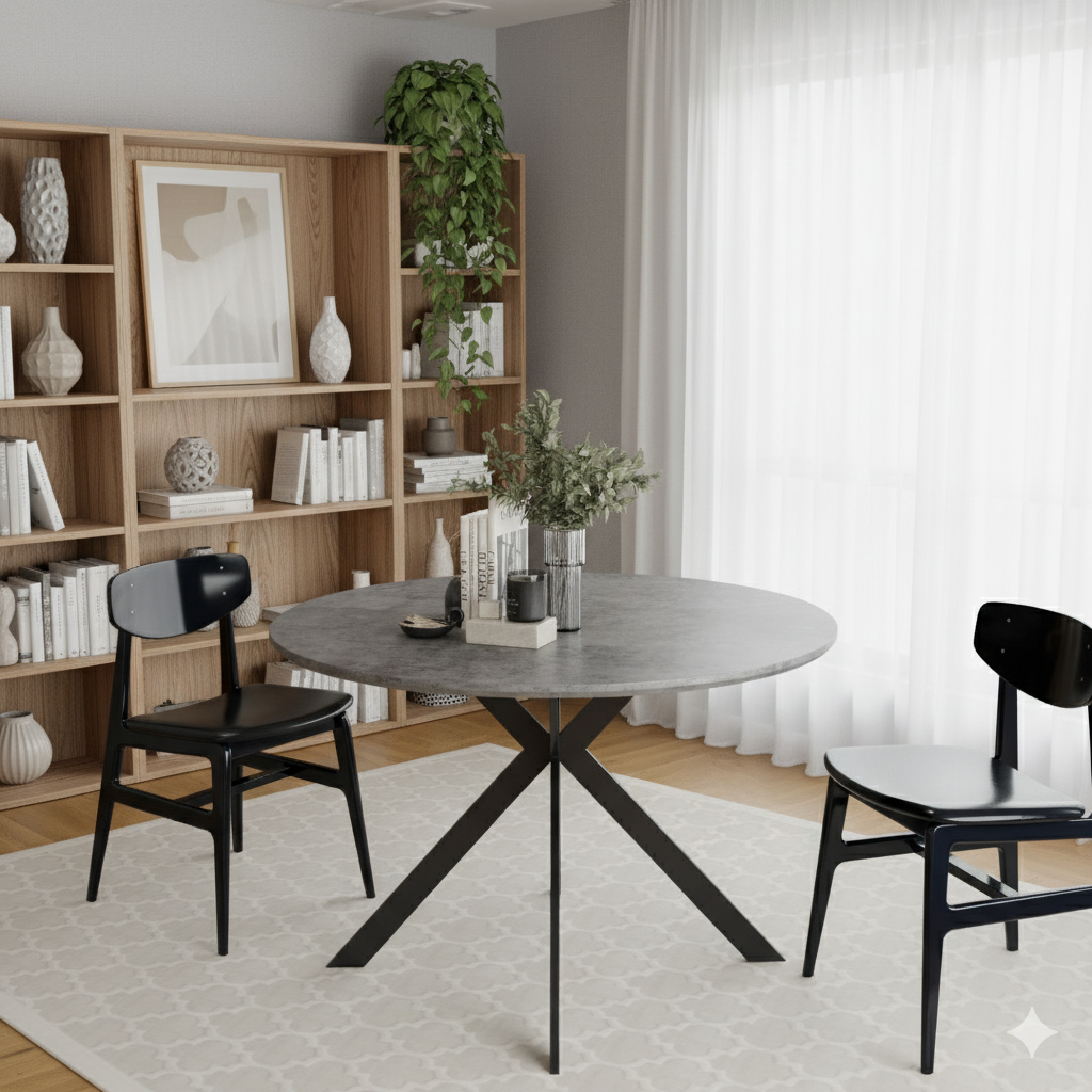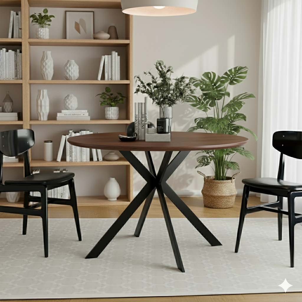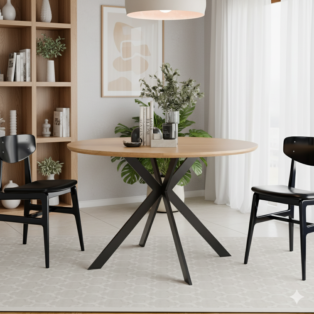 שולחן פינת האוכל עשוי משבבי עץ דחוסים בשילוב מלמין יוקרתי ורגלי מתכת מושחרת