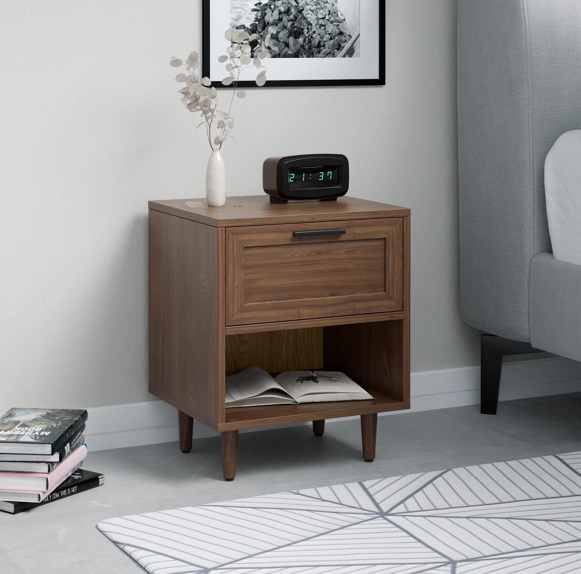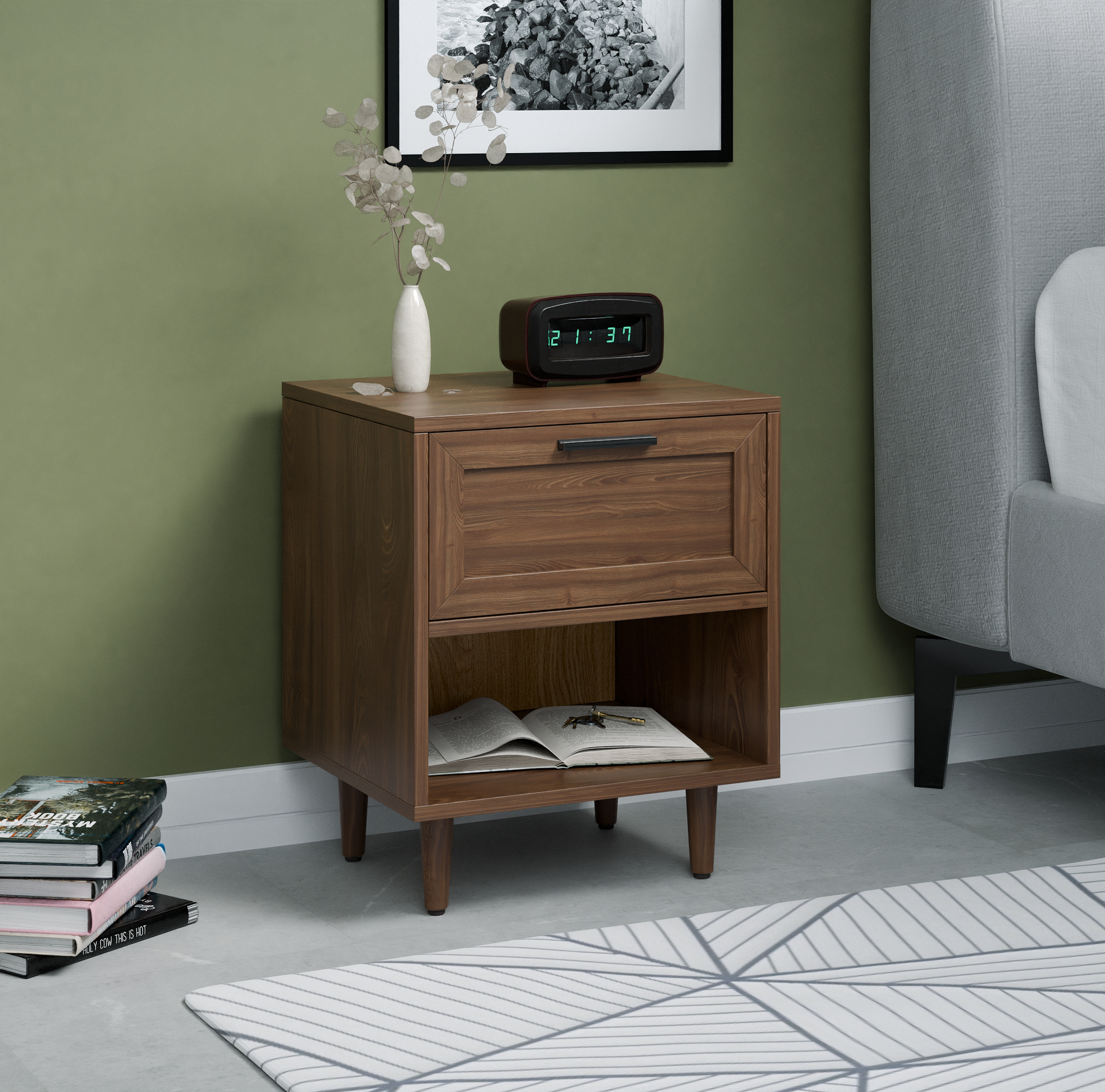 שידת לילה דגם צ'לסי המשלבת מגירה ומדף בעל חלל אחסון בשלושה צבעים מודרניים לבחירה